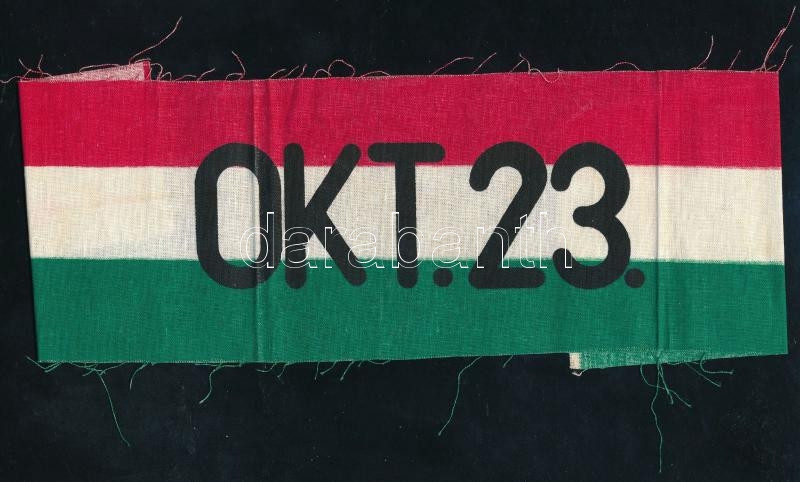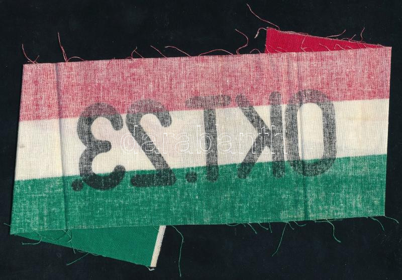 Leírás: 1989. okt. 23. Nemzetiszínű emlékszalag a harmadik Magyar Köztársaság kikiáltásának (egyben az 1956-os forradalom évfordulójának) dátumával, 10x40 cm