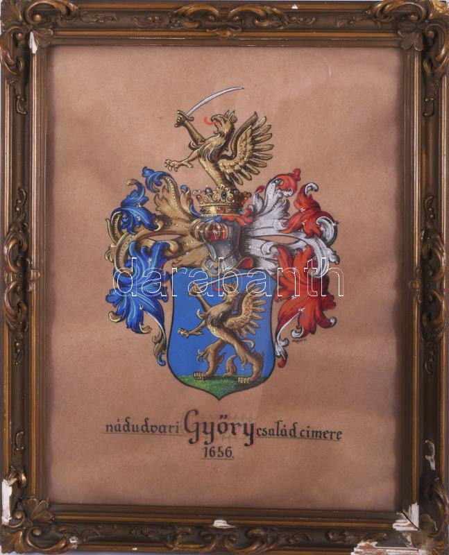 A nádudvari Győry Család címere, vegyes technika, papír, üvegezett ker... https://www.darabanth.com/hu/513-Filatelia-kepeslap-numizmatika-mutargy-konyv-papirregiseg-ekszer-aukcio/513.0/Mutargy-papirregiseg-egyeb/Tortenelmi-dokumentumok-keziratok-erdekessegek~81/A-nadudvari-Gyory-Csalad-cimere-vegyes-technika-papir-uvegezett-keretben-32x26-cm~II3470954