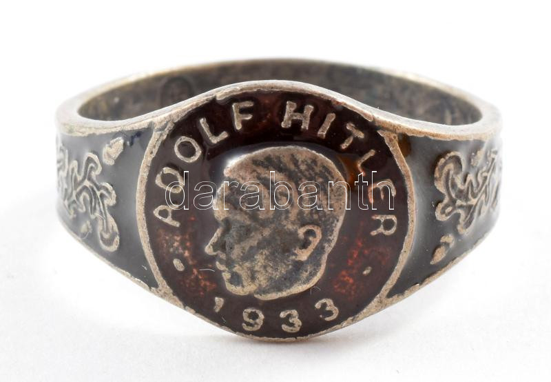 Ezüst (Ag.) gyűrű Adolf Hitler arcképével, zománc berakással, jelzett,... https://www.darabanth.com/hu/513-Filatelia-kepeslap-numizmatika-mutargy-konyv-papirregiseg-ekszer-aukcio/513.0/Mutargy-papirregiseg-egyeb/Tortenelmi-dokumentumok-keziratok-erdekessegek~81/Ezust-Ag-gyuru-Adolf-Hitler-arckepevel-zomanc-berakassal-jelzett-6-g-m-66-Silver-ring-with~II3471685