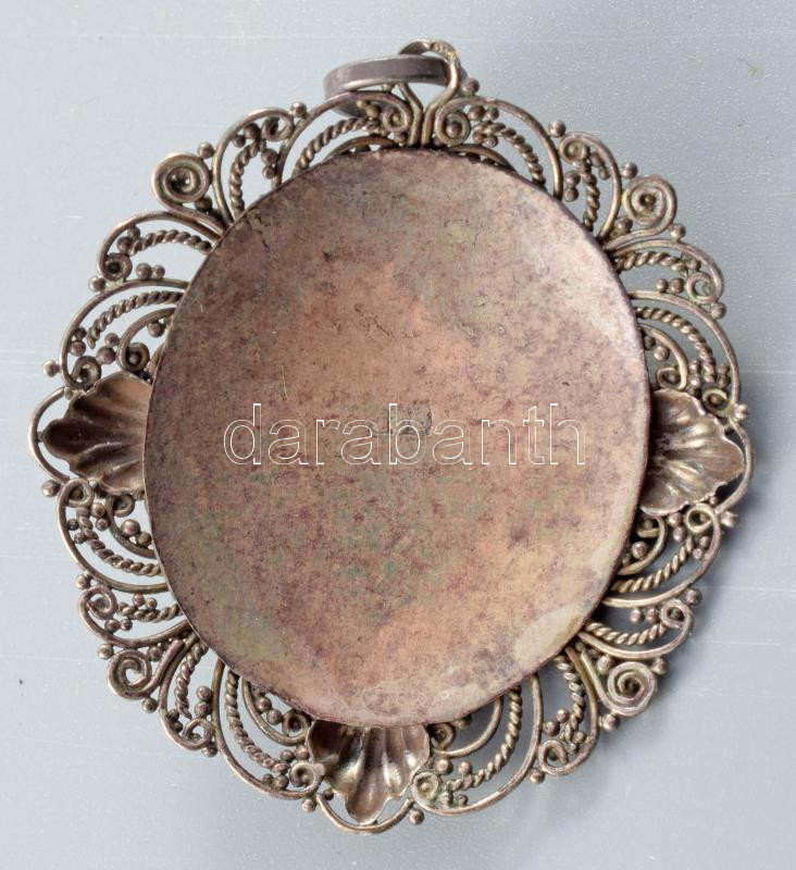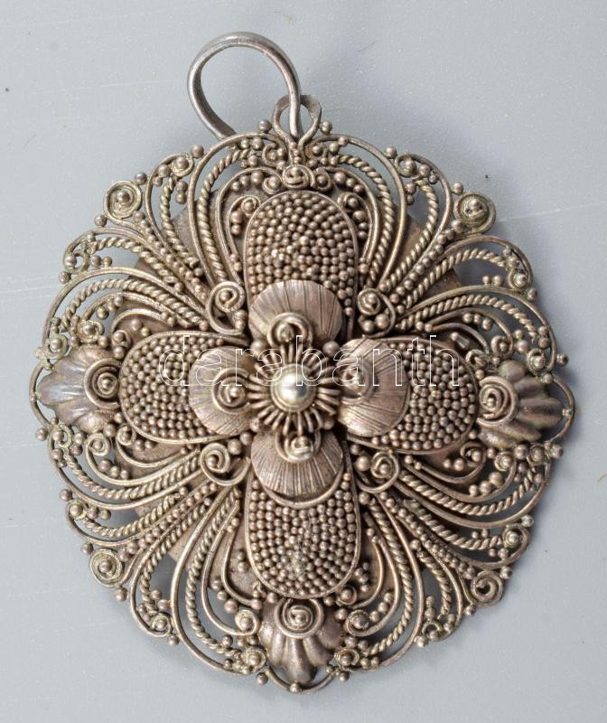 Leírás: Ezüst (Ag) filigrán medál. Jelzett, 4x3,5 cm, nettó 5,4g