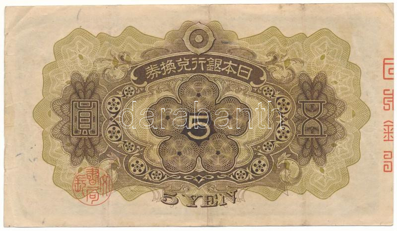 Japan 1930. 5 Yen "225... https://www.darabanth.com/hu/513-Filatelia-kepeslap-numizmatika-mutargy-konyv-papirregiseg-ekszer-aukcio/513.0/Numizmatika/Kulfoldi-bankjegyek~723/Japan-1930-5Y-225-608326-TF3Cbr-3E-Japan-1930-5-Yen-225-608326-CF3Cbr-3E-Krause-P2339~II3465156