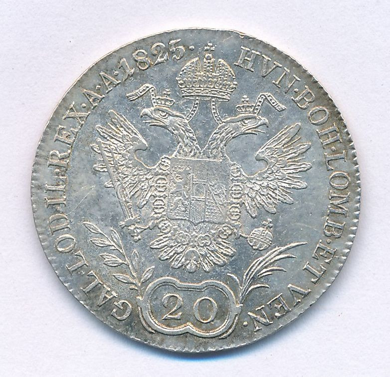 Austria 1825... https://www.darabanth.com/hu/513-Filatelia-kepeslap-numizmatika-mutargy-konyv-papirregiseg-ekszer-aukcio/513.0/Numizmatika/Kulfoldi-fem-es-ezustpenzek~724/Ausztria-1825A-20kr-Ag-I-Ferenc-TXF-patina3Cbr-3E-Austria-1825A-20-Kreuzer-Ag-Franz-I-CXF-pat~II3468071