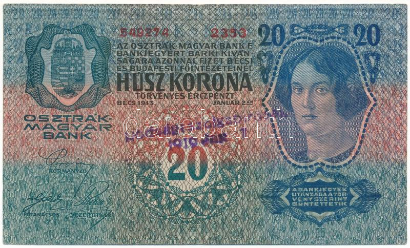 Leírás: 1913. 20K "2353 549274", I. Kiadás hamis(?) felülbélyegzéssel T:F