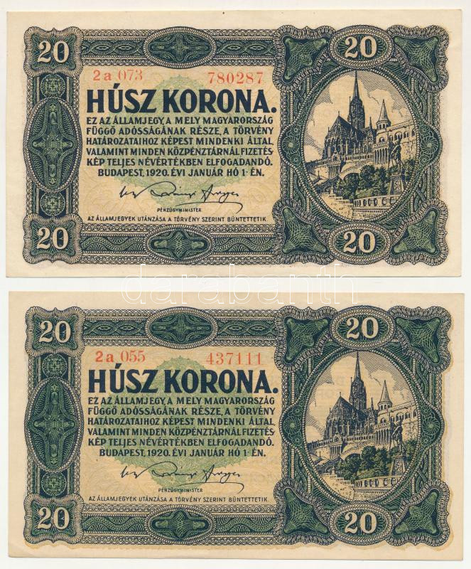Leírás: 1920. 20K (2x) sorszámok közt nincs pont T:AU