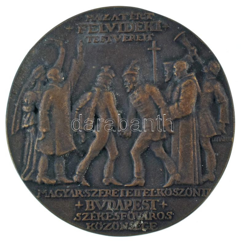 Ispánki József (1906-1992) 1938. "Hazatért felvidéki testvéreit magyar szeretettel köszönti Budapest székesfőváros közönsége / Az ezeréves Magyarország első királya Szent István évében 1038-1938" kétoldalas öntött bronz emlékérem (83mm) T:AU,XF kis patina