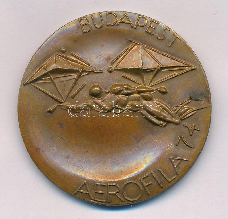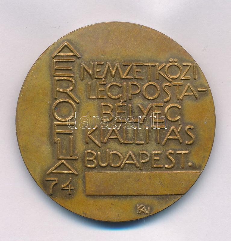 Leírás: Kiss Nagy András (1930-1997) 1974. "AEROFILA 74 / Nemzetközi Légipostabélyeg Kiállítás Budapest" bronz emlékérem (40mm) T:AU patina