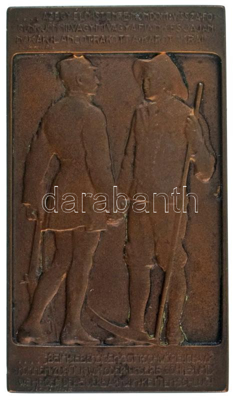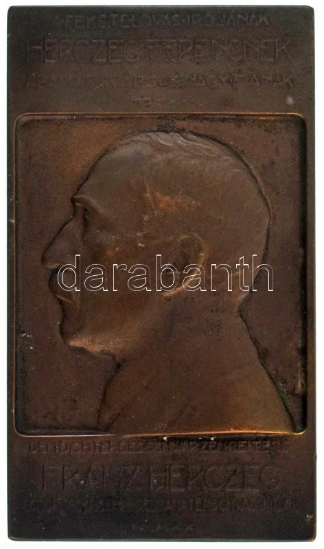 Szentgyörgyi István (1881-1939) 1920. "A fekete lovas írójának, Herczeg Ferencnek, a bánáti svábság nagy fiának / 'Az egy élő Istenre mondom: vissza fogunk jönni! Vagy mi, vagy a fiaink és jaj annak aki láncot rakott a karotokra!' " kétoldalas bronz plakett (80x46mm) T:AU,XF patina