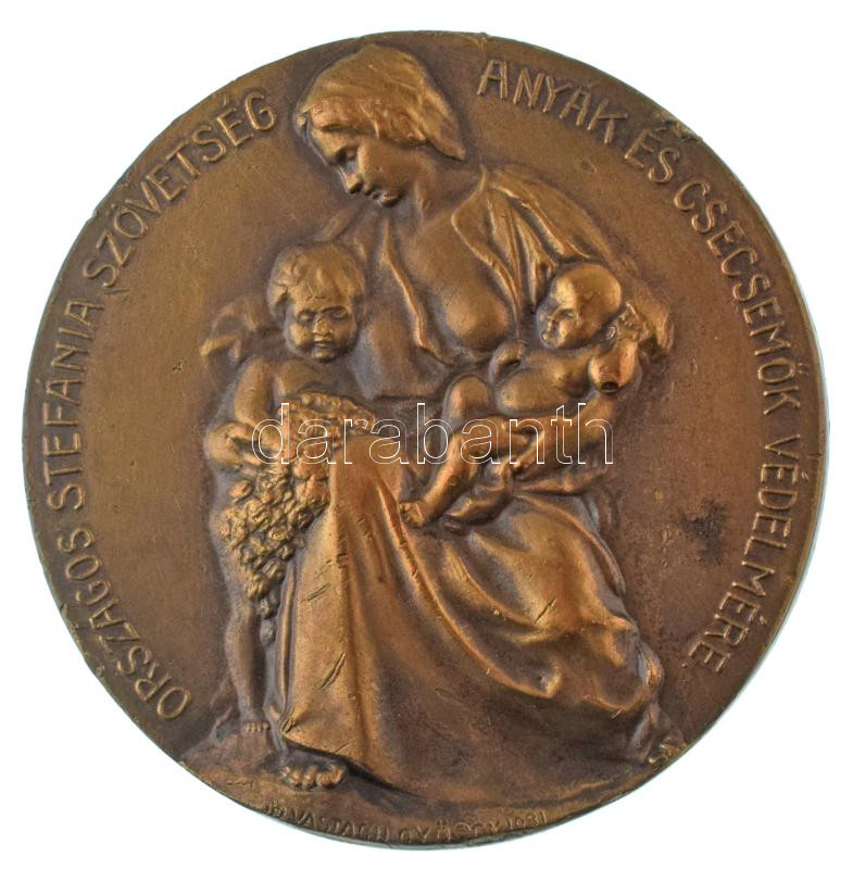 Hungary 1929. "Heim Pál 1875-1929 / Országos Stefánia Szövetség Anyák és Csecsemők Védelmére" double-sided, struck bronze commemorative medallion. Sign.: György Vastagh (60mm) C:AU,XF scratch