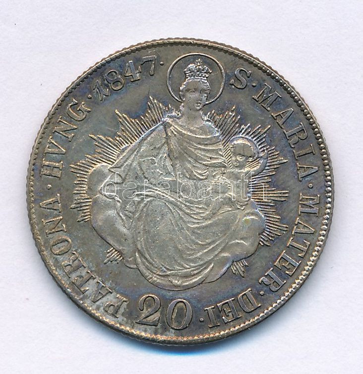 Hungary 1847B 20 K... https://www.darabanth.com/hu/513-Filatelia-kepeslap-numizmatika-mutargy-konyv-papirregiseg-ekszer-aukcio/513.0/Numizmatika/Magyar-es-magyar-verdejelu-fem-es-ezustpenzek~717/1847B-20kr-Ag-V-Ferdinand-T-AU-patinaHungary-1847B-20-Kreuzer-Ag-Ferdinand-V-C-AU~II3467441