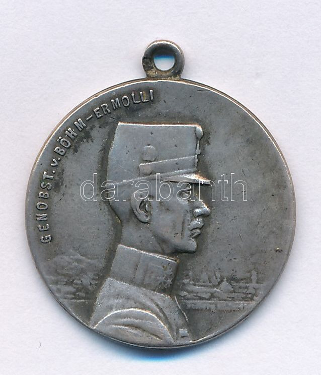 Leírás: 1915. "Eduard von Böhm-Ermolli tábornok" egyoldalas jelzett Ag emlékérem (6,51g/0,750/23mm) T:XF patina