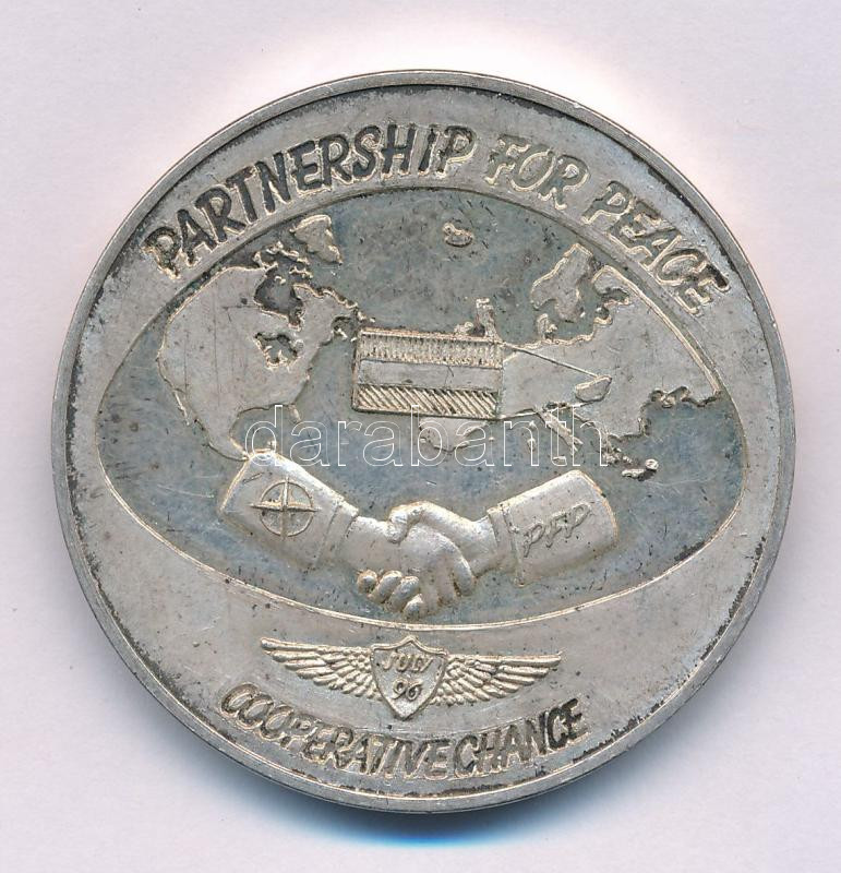 Leírás: 1996. NATO "Partnership for Peace - Cooperative Chance" (Partnerség a békéért - Közös esély) egyoldalas, ezüstözött fém emlékérem (42,5mm) T:XF,VF, patina