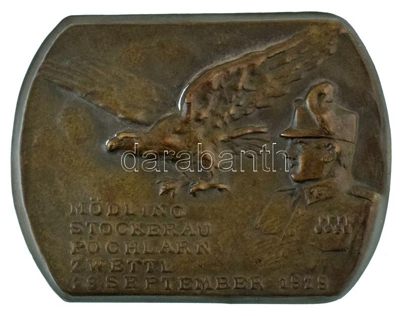 Ausztria 1929. "MÖDLING STOCKERAU PÖCHLARN WETTL 29 SEPTEMBER 1929" bronz lemezjelvény függőleges tűvel (49x38mm) T:VF lyukas