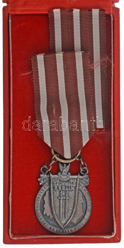 Poland 1975. "Grünwald Berlin - Braterstwo Broni na Straży Pokoju i Socjalizmu (Brotherhood in Arms for Peace and Socialism)" silver patinated metal medal on ribbon, with thin ribbon, in original case C:AU ribbon is slightly frayed