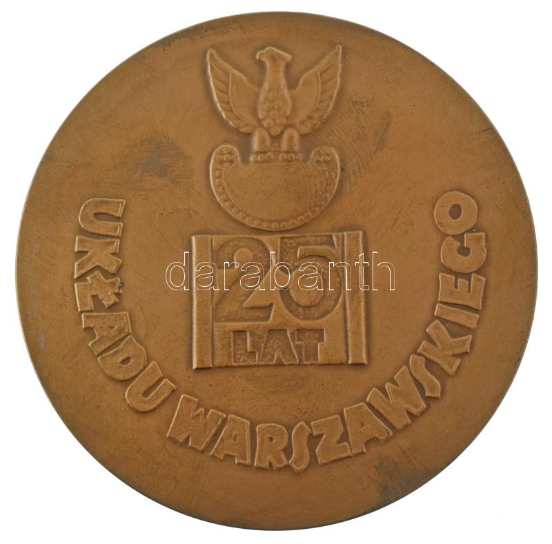 Lengyelország 1980. "A Varsói Szerződés 25 éve / Varsó - Berlin - Prága - Budapest - Moszkva - Bukarest - Szófia" kétoldalas bronz emkékérem. Szign.: "ST SIKORA" (70mm) T:XF,VF