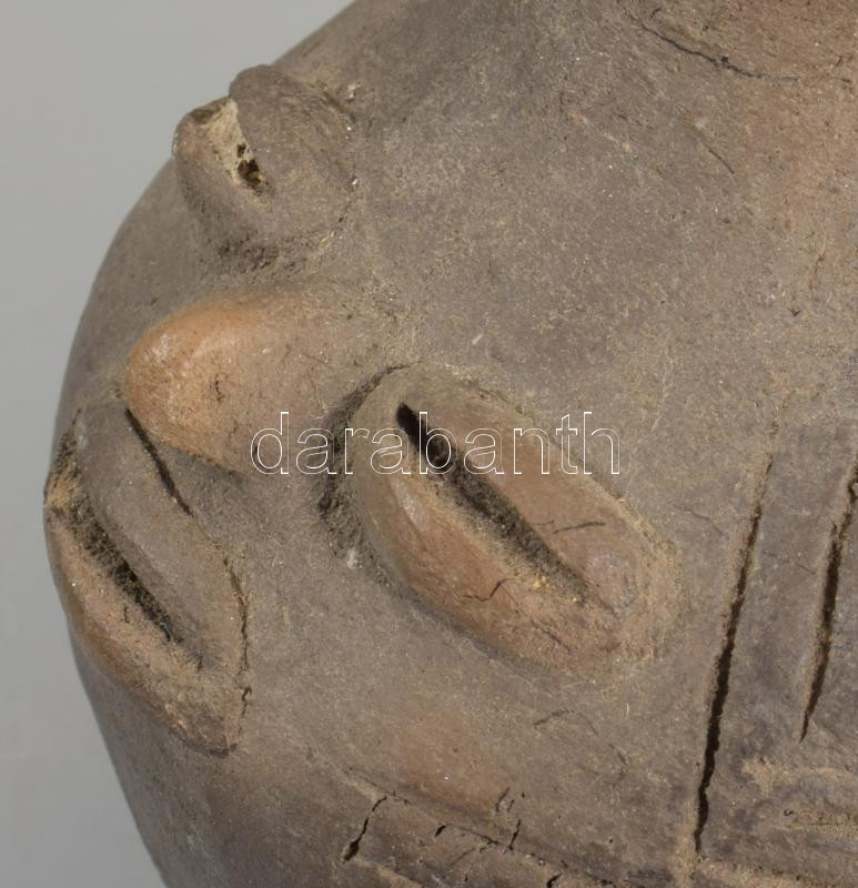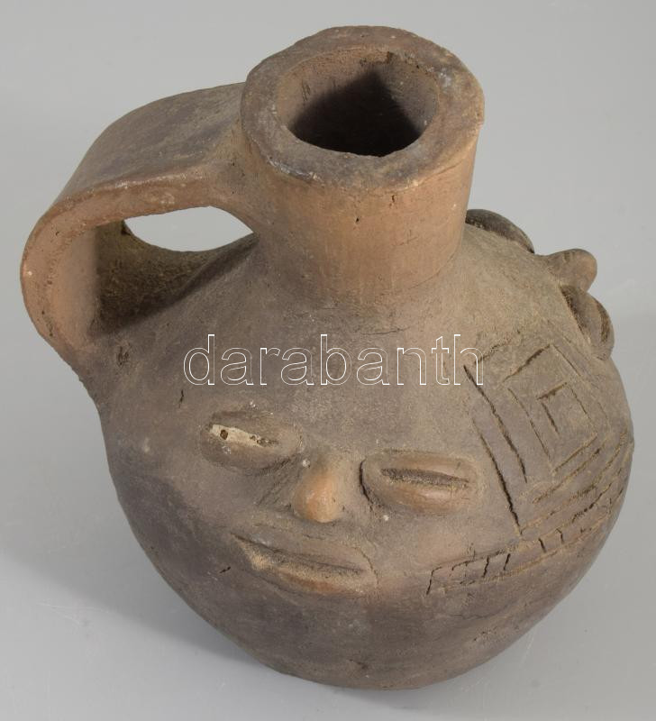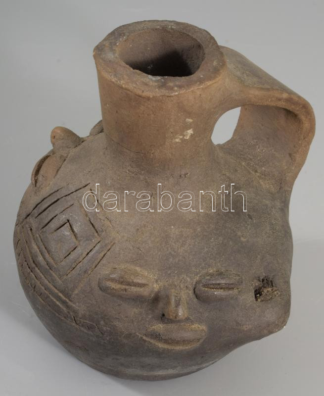 Leírás: Arcmintás kerámia flaska, azonosítatlan korú, m:12 cm