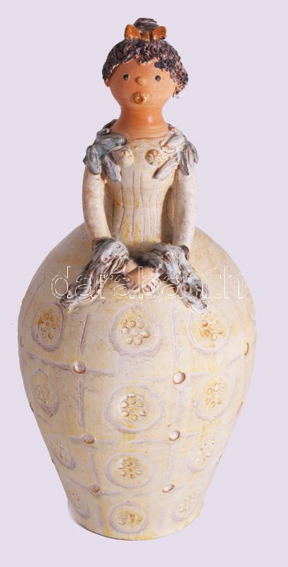 Leírás: Kiss Roóz Ilona (1920-2010): Mázas kerámia szobor. Kézzel festett, jelzett, hibátlan m: 42 cm