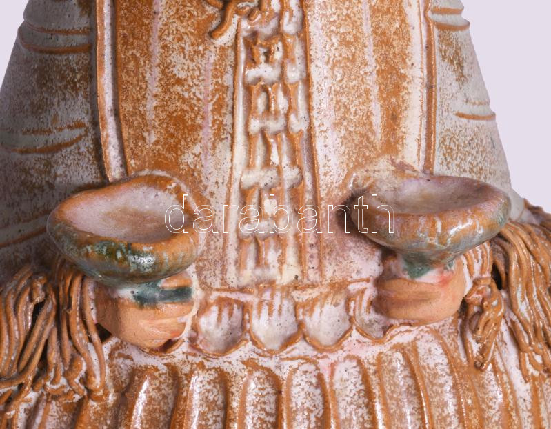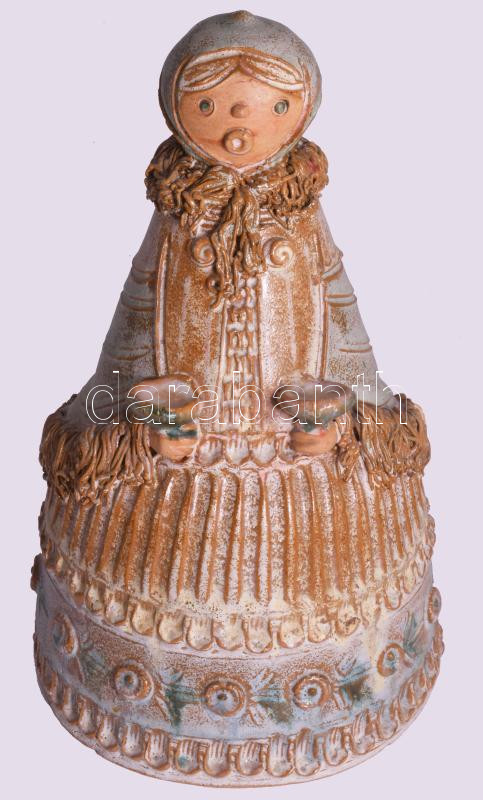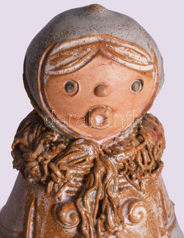 Leírás: Kiss Roóz Ilona (1920-2010): Mázas kerámia szobor. Kézzel festett, jelzett, repedéssel m: 29 cm