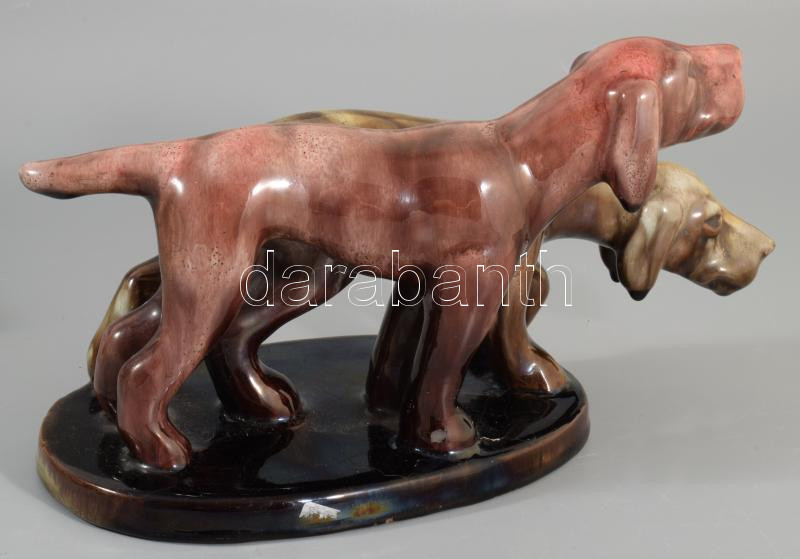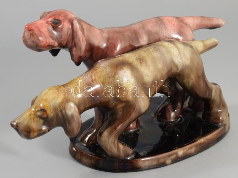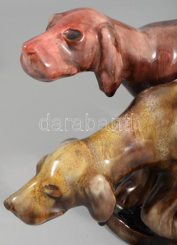 Leírás: Komlós Kerámia vadászkutya pár, jelzett, kis mázhibákkal, 25x13 cm