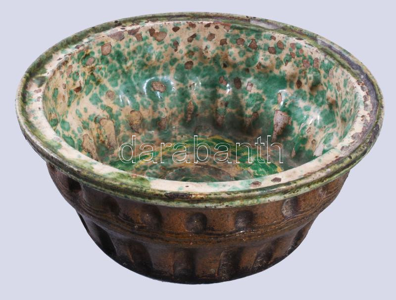 Leírás: Kuglófsütő. Somogy, 19. sz. utolsó harmada, mázhibával, repedéssel, d: 24 cm