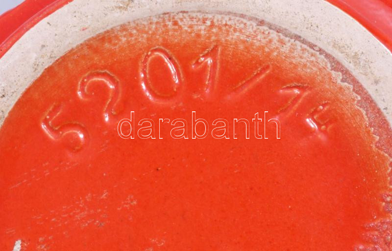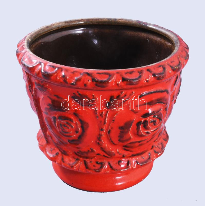 Leírás: Retro német vérvörös kaspó, kis kopással, d: 15 cm, m: 13 cm