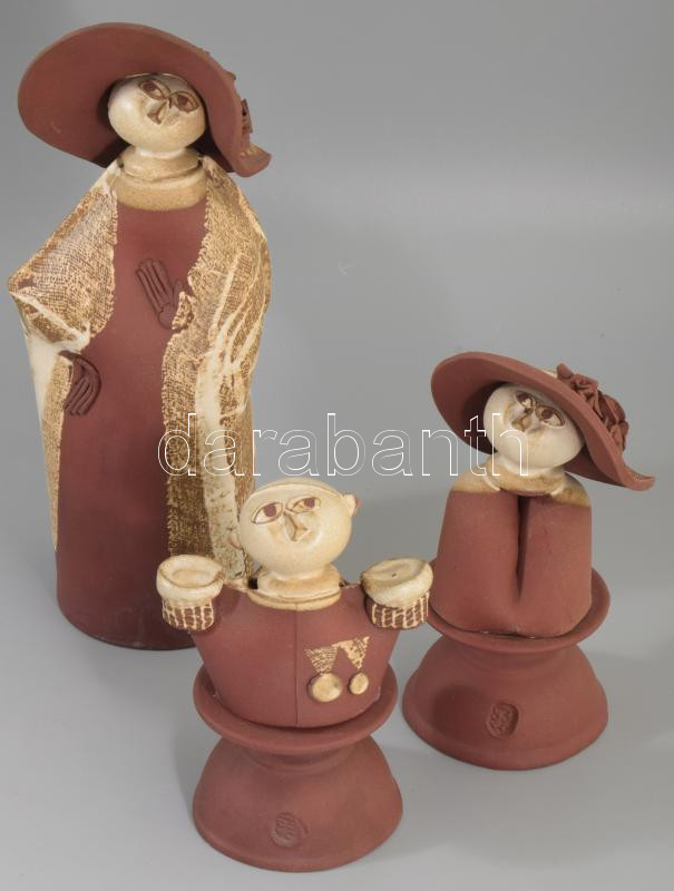Leírás: Sarkantyu Judit (1947- ): 3 darab figura. Jelzett, hibátlan, m: 26,5 cm alatt