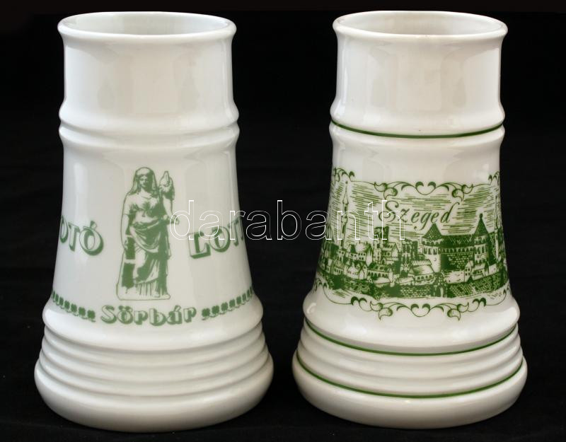 Leírás: 2 db Alföldi porcelán korsó(Szeged, Totó Lottó Sörbár), matricás, hibátlan, jelzett, m: 17 cm