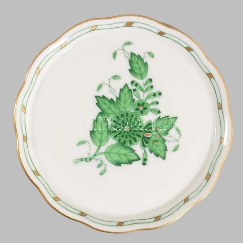 Herendi Apponyi zöld mintás ékszertartó tálka, jelzett, hibátlan, d: 1... https://www.darabanth.com/hu/513-Filatelia-kepeslap-numizmatika-mutargy-konyv-papirregiseg-ekszer-aukcio/513.0/Porcelan-keramia-uveg/Porcelan~78/Herendi-Apponyi-zold-mintas-ekszertarto-talka-jelzett-hibatlan-d-10-cm~II3469439