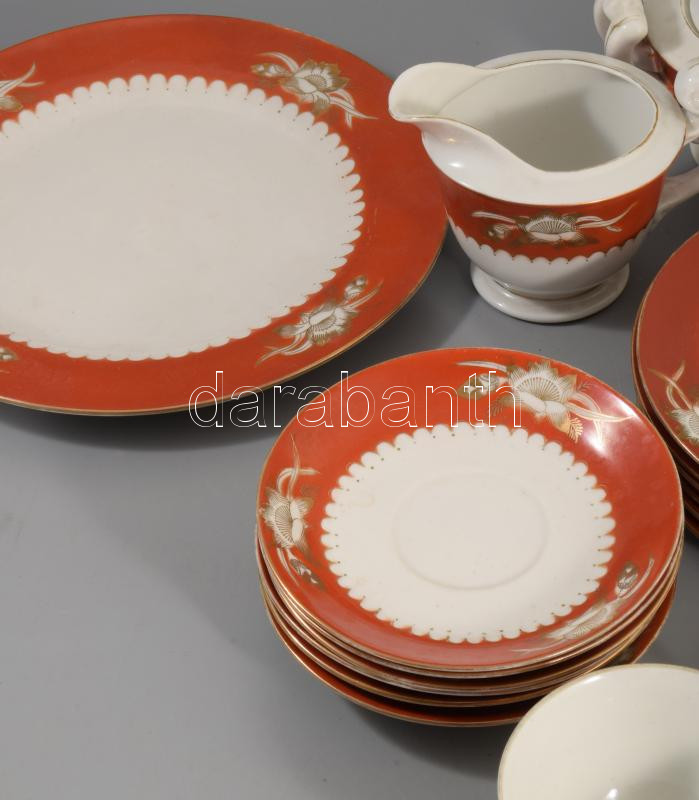 Leírás: Kínai süteményes és kávés készlet, jelzett, teljes, kopással.