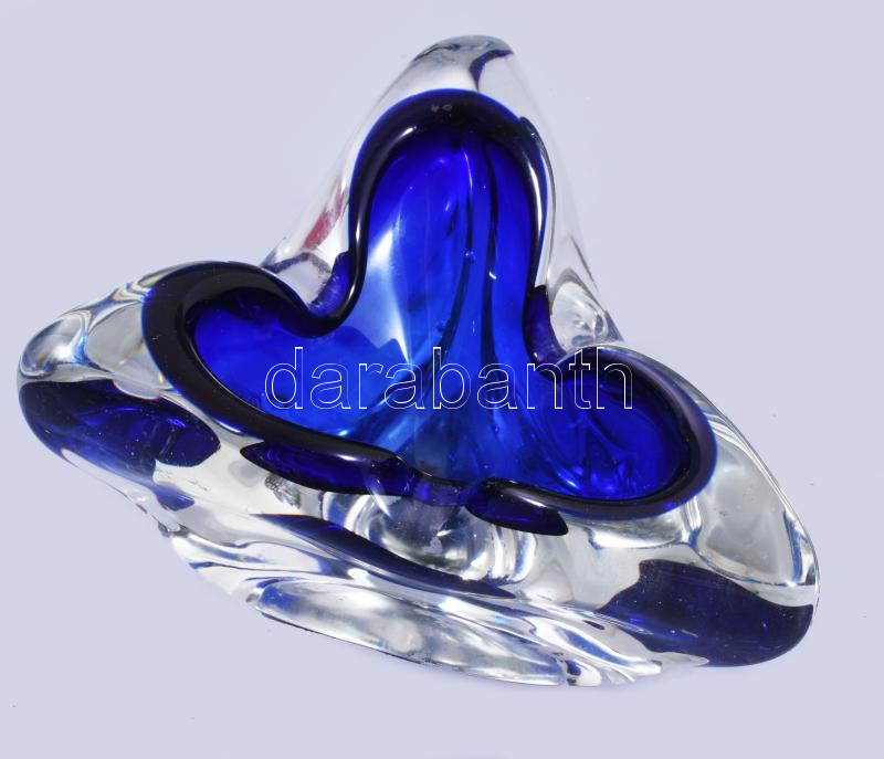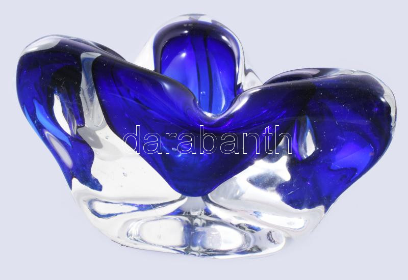 Leírás: Cseh kék üveg asztaldísz, 16x16 cm