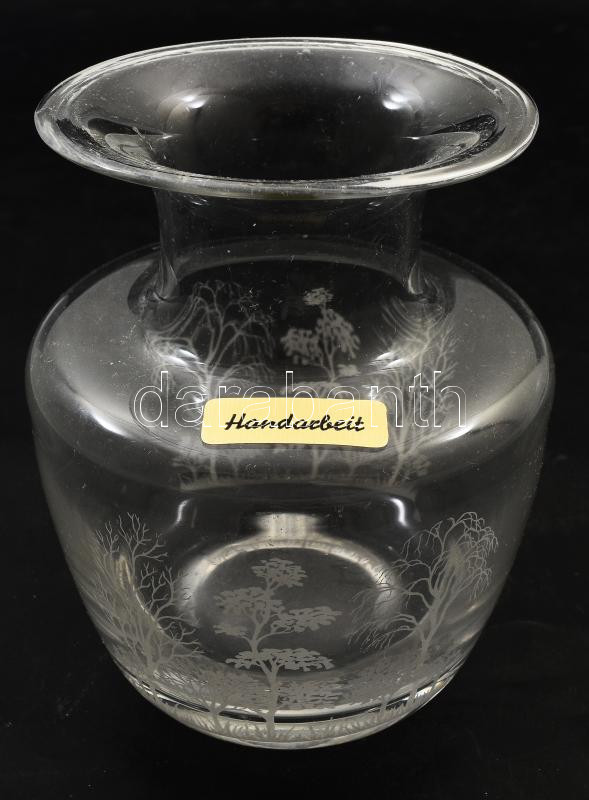 Kézzel készült tájkép jelenetes váza, hibátlan, m: 12,5 cm https://www.darabanth.com/hu/513-Filatelia-kepeslap-numizmatika-mutargy-konyv-papirregiseg-ekszer-aukcio/513.0/Porcelan-keramia-uveg/Uvegtargyak~79/Kezzel-keszult-tajkep-jelenetes-vaza-hibatlan-m-12-5-cm~II3415759