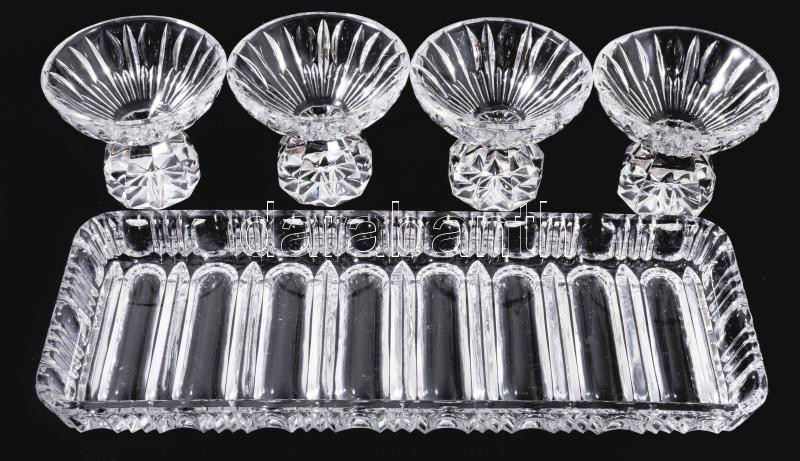 Leírás: Kristály 4 személyes likőrkínáló készlet, hibátlan, 23x9 cm, m: 6 cm