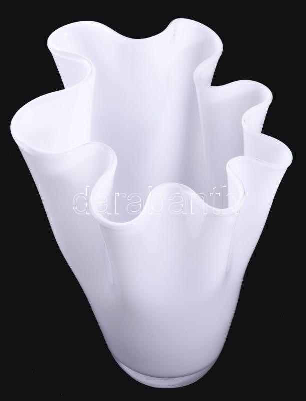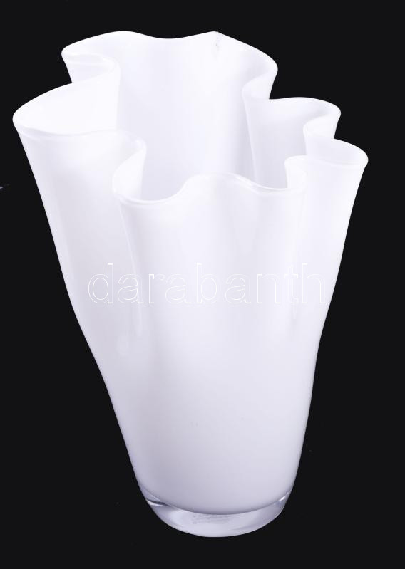 Leírás: Murano tejüveg fazoletto váza, hibátlan, m: 25,5 cm