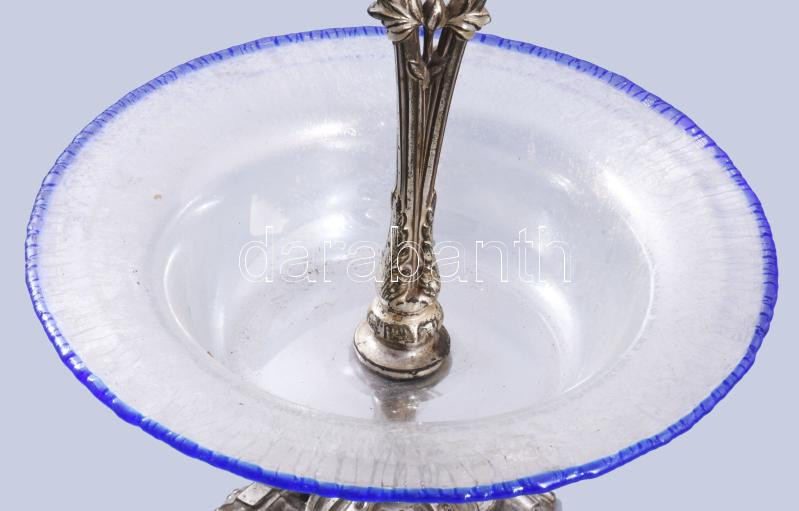Leírás: Szecessziós kínáló, irizáló üvegtállal, m: 29 cm