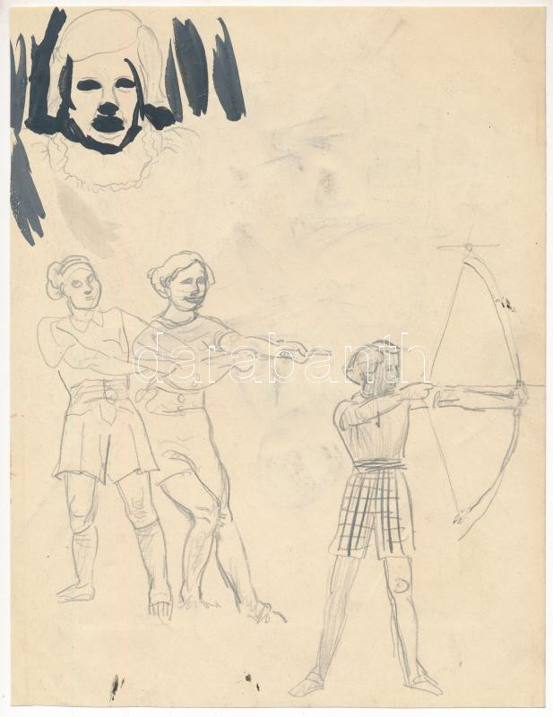Leírás: Jelzés nélkül: Rajzoló lány. Ceruza, papír. Kétoldalas mű, hátoldalán egyéb tanulmányrajzok (íjazó lány stb.). 26x20 cm