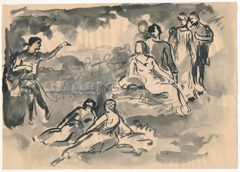 Jelzés nélkül: Társaság a szabadban. Lavírozott tus, ceruza, papír. 14... https://www.darabanth.com/hu/514-Festmeny-grafika-plakat-ex-libris-arveres/516.0/Festmenyek-es-grafikak/Festmenyek-es-grafikak-jelzessel-jelzes-nelkul~5/Jelzes-nelkul-Tarsasag-a-szabadban-Lavirozott-tus-ceruza-papir-14-5x21-cm~II3436613