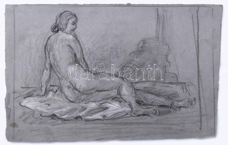 Leírás: Jelzés nélkül, XX. sz. eleje: Női akt. Vegyes technika, papír, bal alsó sarkában apró folttal, 16×25 cm