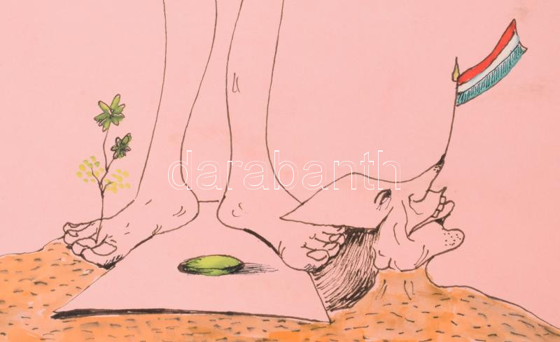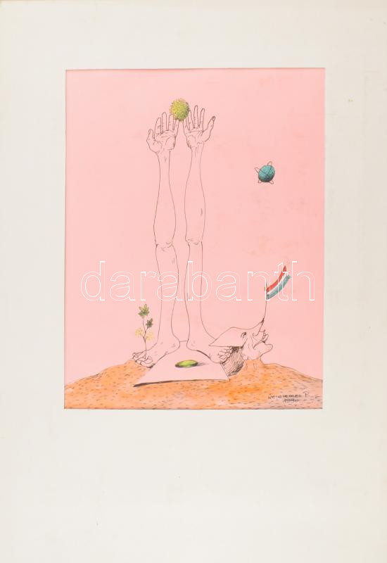 Leírás: Kelemen P. jelzéssel: Piros-fehér-zöld (cím nélkül), 1990. Tus, akvarell, papír. Paszpartuban. 30x23 cm