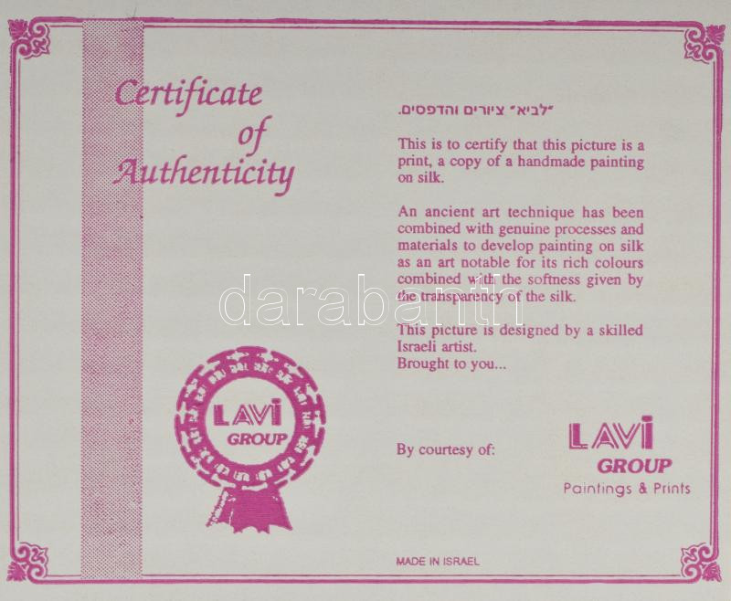 Lavi jelzéssel: Jeruzsálem látképe. Ofszet nyomat, papír. Dekoratív, ü... https://www.darabanth.com/hu/514-Festmeny-grafika-plakat-ex-libris-arveres/516.0/Festmenyek-es-grafikak/Festmenyek-es-grafikak-jelzessel-jelzes-nelkul~5/Lavi-jelzessel-Jeruzsalem-latkepe-Ofszet-nyomat-papir-Dekorativ-uvegezett-fakeretben-19~II3443296