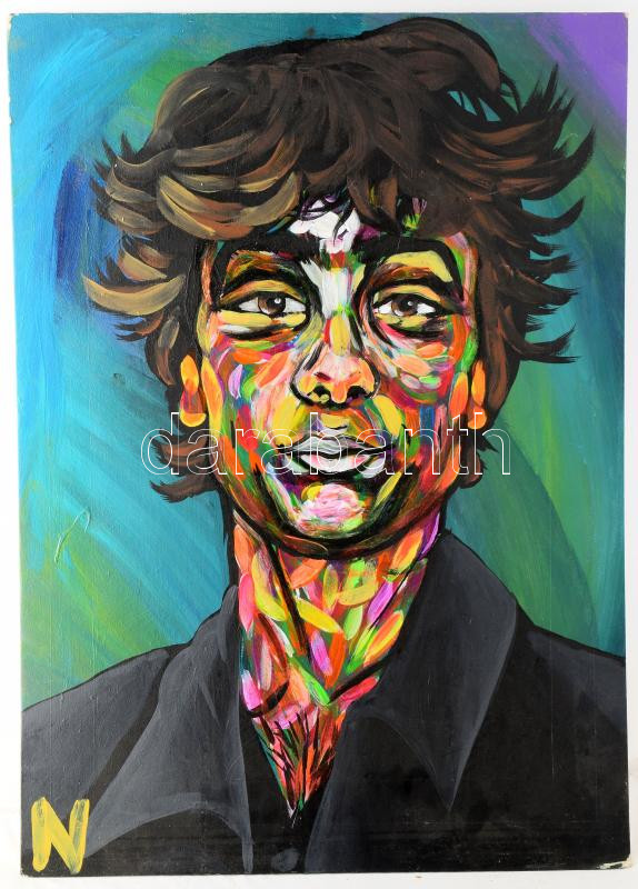 Leírás: N. jelzéssel: Színes arc. Olaj, karton. 70x50 cm