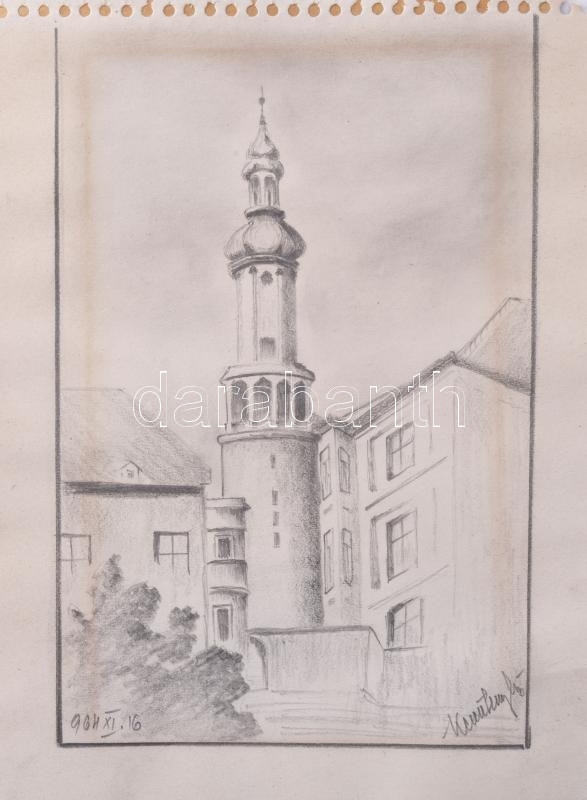 Leírás: Olvashatatlan jelzéssel: Sopron. Ceruza, papír, 21x13,5 cm