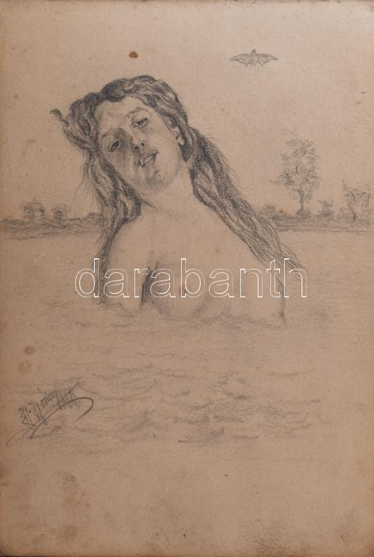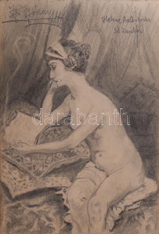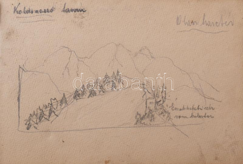 B Bóday Imre (XX. sz. eleje): Vázlatkönyv női aktokkal, I. világháborús helyszínrajzokkal stb., össz. kb. 35 db rajzzal. Ceruza, papír, részben jelzett. Korabeli, szétnyílt kötésű, kissé foltos vászonborítású vázlatkönyvben. 147,5x21 cm