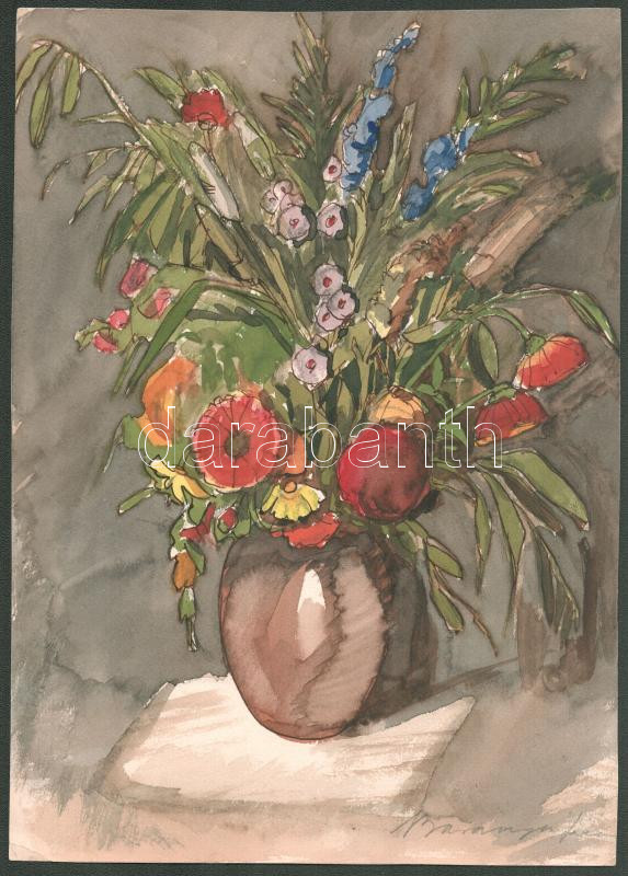 Leírás: Baranyai Ferenc (?-): Csendélet. Akvarell, papír, jelzett, 30x21 cm