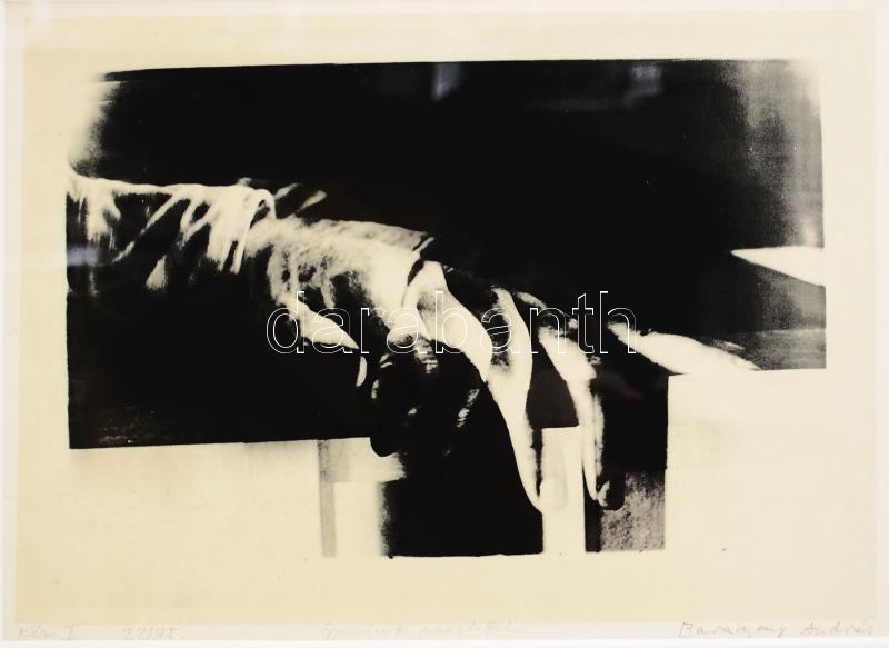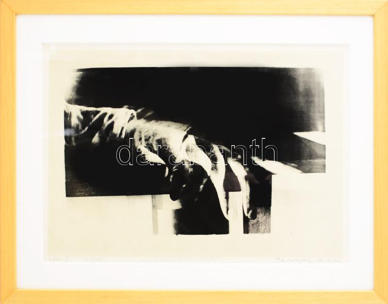 Baranyay András (1938-2016): Kéz I, 1980-as évek. Ofszetnyomat, papír. Jelzett, számozott: 22/75. Baranyay András autográf ajánlásával ("Gyurinak szeretettel"). 28×39,5 cm. Üvegezett fakeretben. A Makói Grafikai Művésztelepen készült gyűjtői ritkaság!
