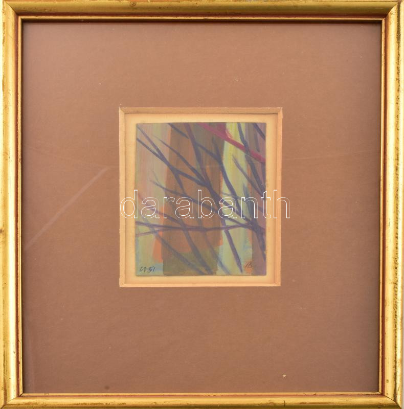 Leírás: Barta István (1892-1976): Ágas-bogas. Vegyes technika, papír, jelzett, üvegezett fakeretben. 12x9 cm