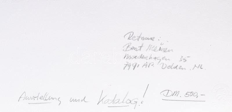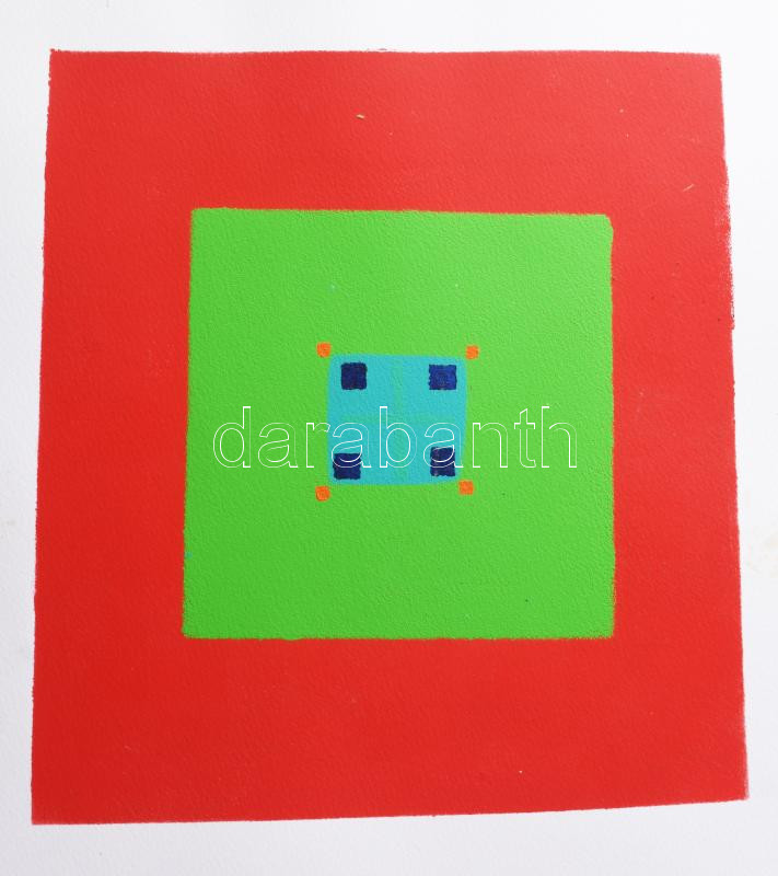 Leírás: Beat Meinen (-): Geometria, Abádszalók, 2000. Tempera, papír, jelzett, hátoldalán autográf felirattal, lapszéli foltokkal. 30x27 cm