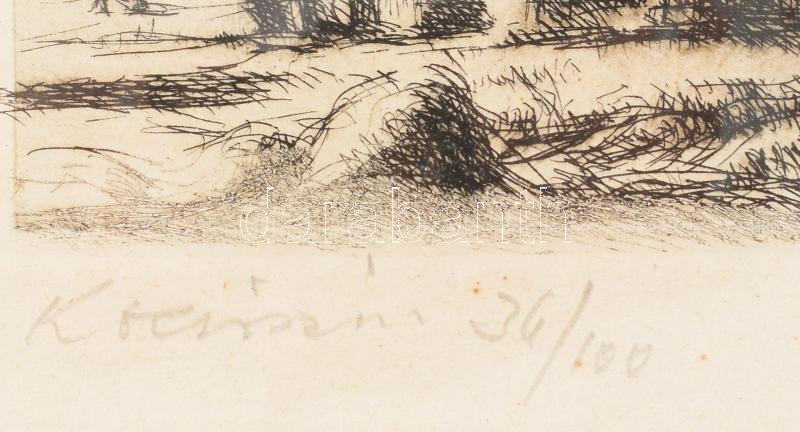 Leírás: Boldizsár István (1897-1984): Kocsiszín. Rézkarc, papír, jelzett, számozott (36/100), lap széle kissé foltos, 19×34,5 cm