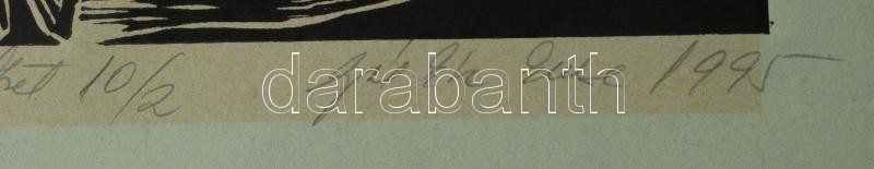 Leírás: Burján Éva (Gál Emese Éva, 1955-): Ártézi kút Békésről (Turul), 1995. Linómetszet, papír, jelzett, számozott (10/2), 46x31 cm