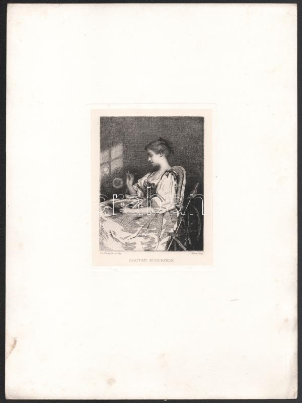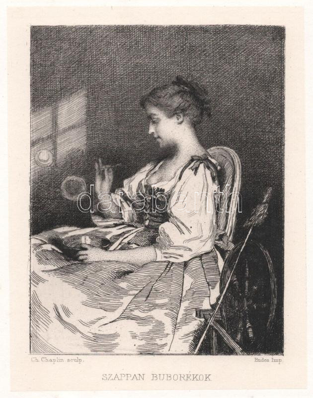 Charles Joshua Chaplin (1825-1891): Szappan buborékok. Rézkarc, papír, jelzett a karcon. Az 1884-ben megjelent Életképek. Jelenkori művészek találkozója. Husz rézkarcz c. mappából. Lapszéli kisebb foltokkal. 15x11,5 cm