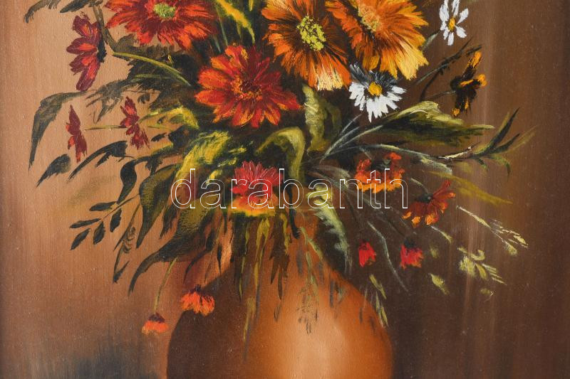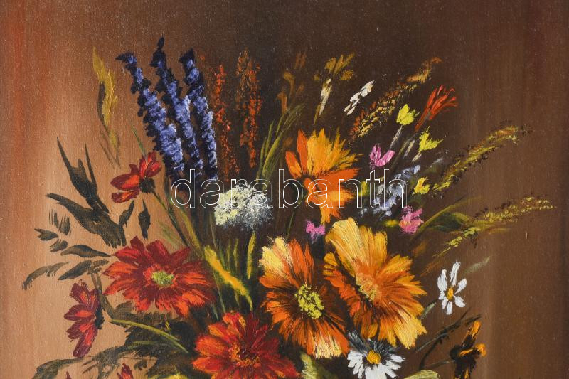 Leírás: Cs. Gulyás Mária (-): Színes csokor. Olaj, vászon. Jelzett. Dekoratív, kissé sérült fakeretben. 48x35 cm