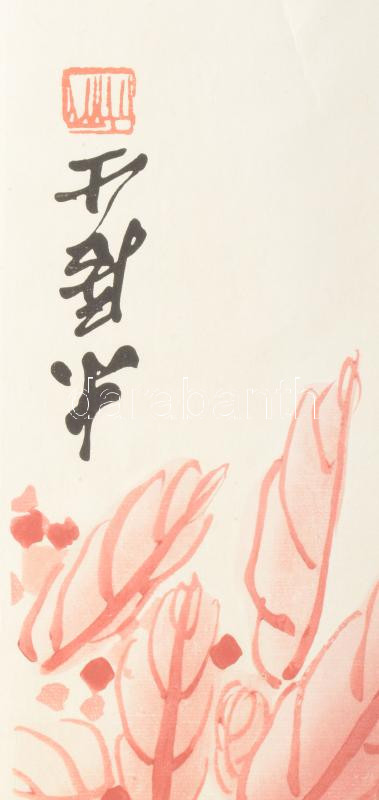 Leírás: Csi Paj-si/Qi Baishi (1864-1957): Vörös levelek. Nyomat, papír, jelzett a nyomaton. 23x31 cm